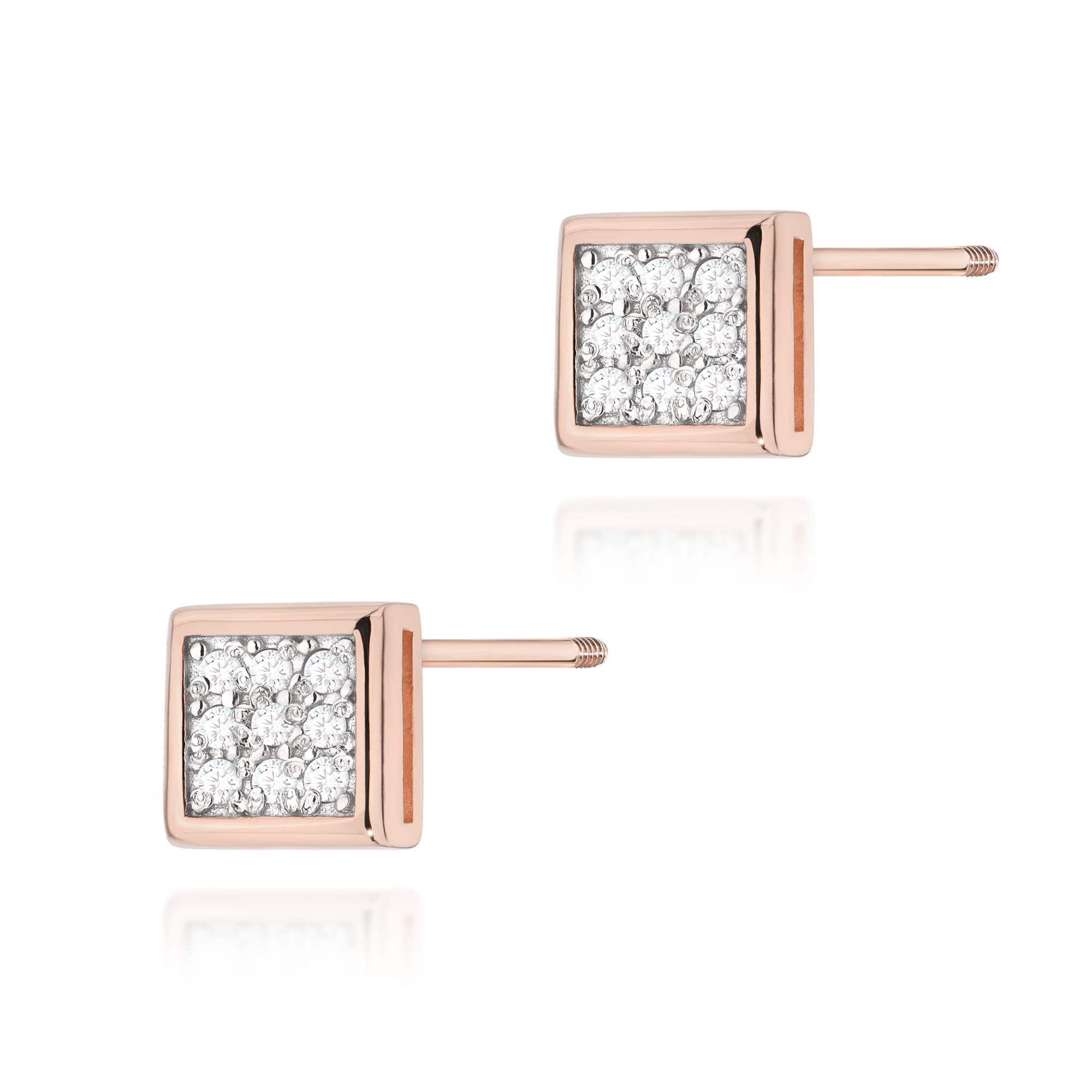 Kolczyki z diamentami różowe złoto sztyft zakręcany