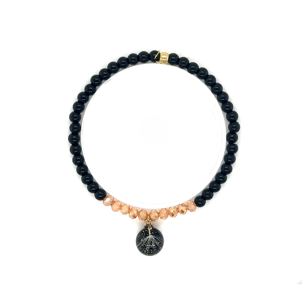 Bransoletka z dmuchawcem – czarne koraliki i brzoskwiniowe kryształki – BigDIAMOND Jubiler Kraków