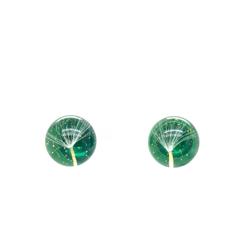 Zielone kolczyki sztyfty z dmuchawcem w żywicy – BigDIAMOND Jubiler Kraków