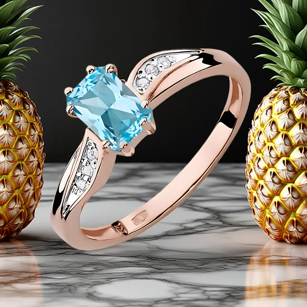 Odkryj Wyjątkowy Pierścionek z Różowego Złota z Błękitnym Topazem i Brylantami