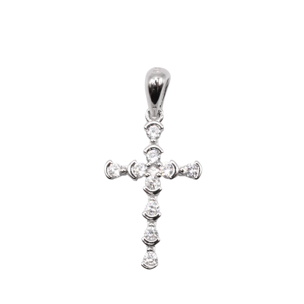 Subtelny i elegancki srebrny krzyżyk z cyrkoniami, wykonany z najwyższej jakości srebra próby 925.