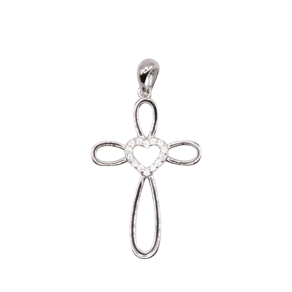 Elegancki wisiorek w kształcie krzyża wykonany ze srebra próby 925.